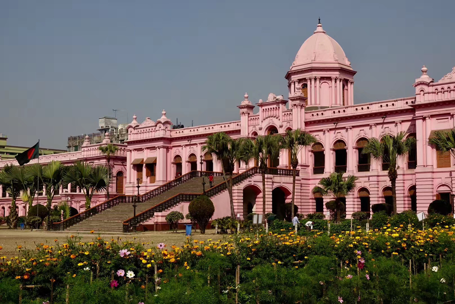 距孟加拉恒河渡口不遠的地方有一座粉紅色宮殿式的豪華建筑。那是1872年一位名叫阿赫桑曼濟勒的地主在法國人留下的倉房基礎上改建的私邸,后來曾在一次龍卷風襲擊時受創(chuàng)。李仁奇 攝