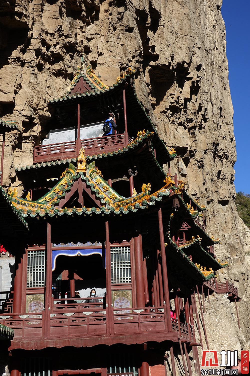 其建筑以臨淵而建、精巧險(xiǎn)峻著稱。當(dāng)?shù)赜小皯铱账拢胩旄?,三根馬尾空中吊”的俚語。李仁奇攝。
