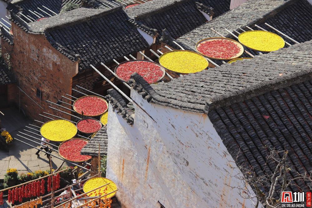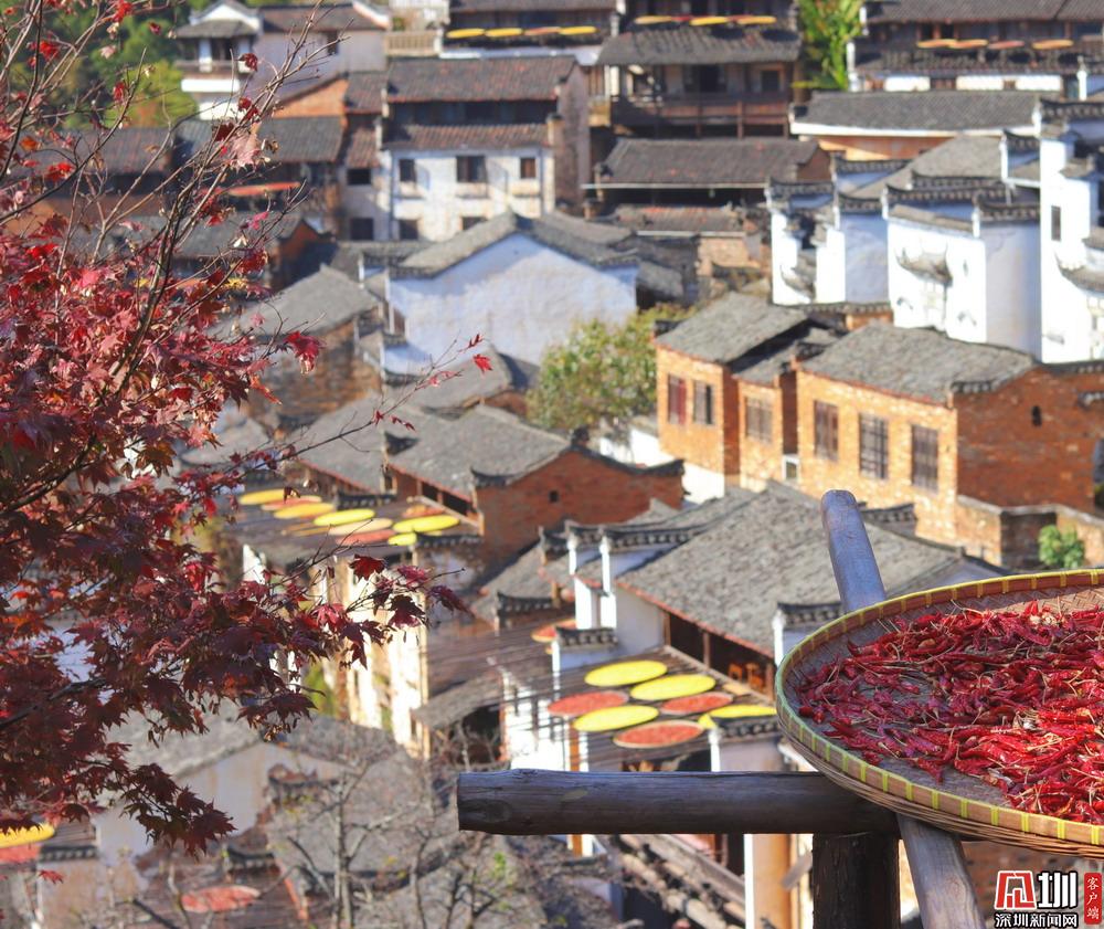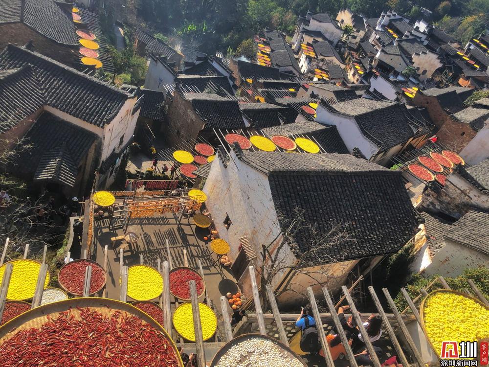 見圳客戶端·深圳新聞網(wǎng)2020年11月25日訊 江西婺源縣篁嶺村獨(dú)特的“曬秋”農(nóng)俗景觀。篁嶺村位于江西省上饒市婺源縣東北部,是著名的“曬秋”文化起源地,也是一座距今近六百年歷史的徽州古村。每當(dāng)日出山頭,數(shù)百棟徽派古民居在百米落差的坡面錯(cuò)落排布,整個(gè)山間村落徽式民居土磚外墻與曬架上五彩繽紛豐收成果組合,繪就出“曬秋”農(nóng)俗特色景觀。