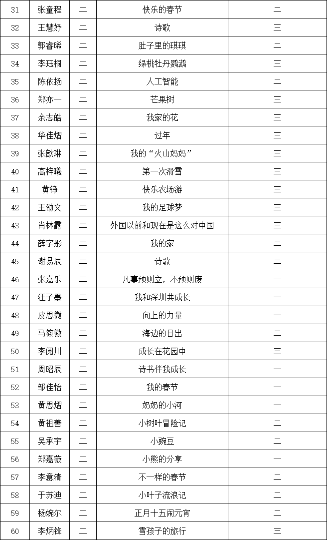 自2021年1月,活動(dòng)征稿啟動(dòng)以來,獲得了深圳市廣大中小學(xué)生、教師、文學(xué)愛好者的熱烈響應(yīng)積極參與,吸引了深圳百余所學(xué)校的上萬人關(guān)注報(bào)名。現(xiàn)公布南山實(shí)驗(yàn)教育集團(tuán)前海港灣學(xué)校校園專場(chǎng)晉級(jí)復(fù)賽名單如下: