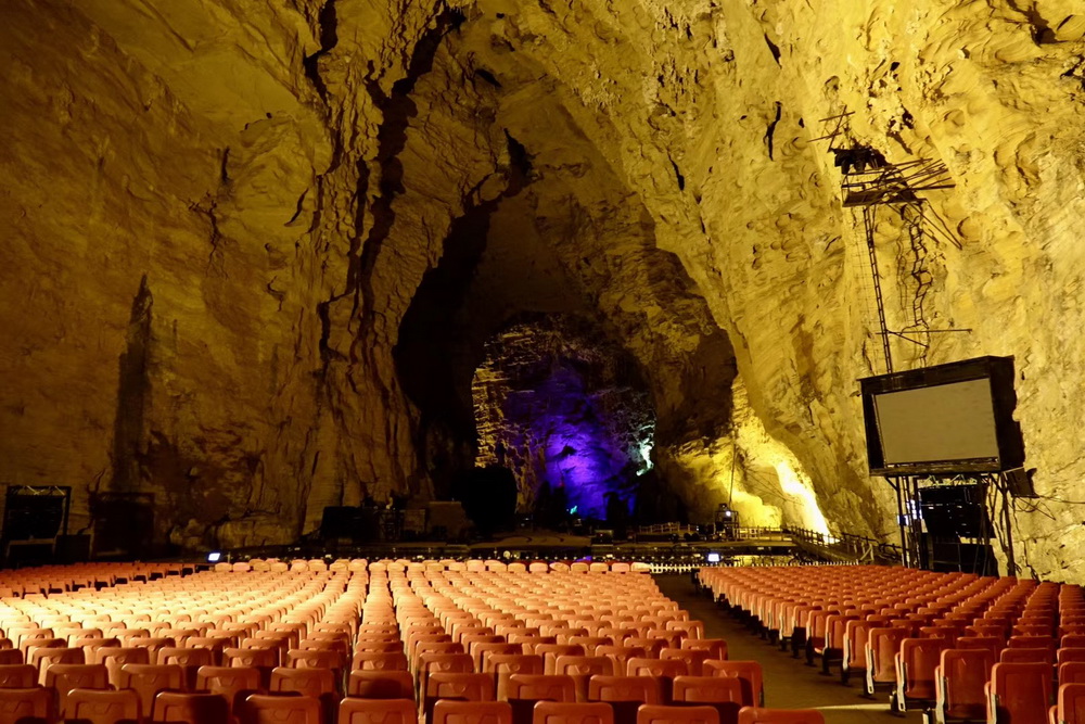 旱洞里現(xiàn)在有兩個(gè)劇場(chǎng),有定時(shí)的激光和歌舞表演。水洞里有地下瀑布10余處。李仁奇 攝