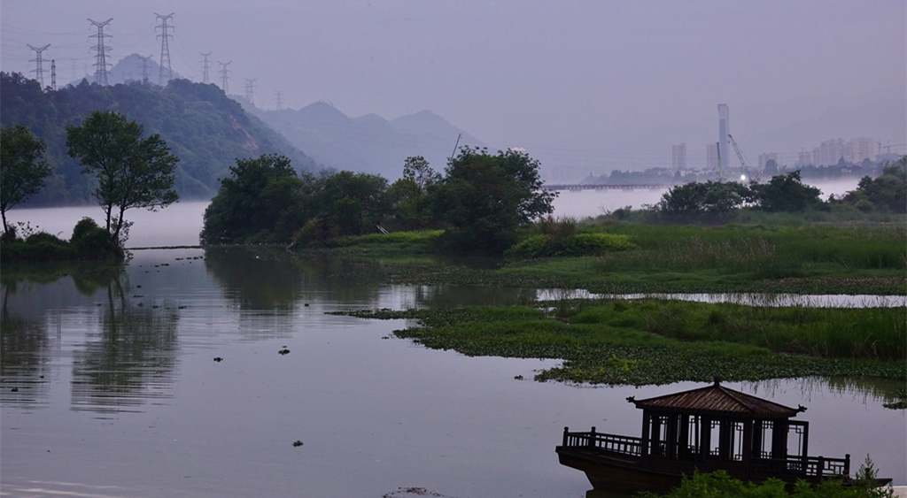自下游興建富春江水電站后,《富春山居圖》描繪的意境雖不復(fù)存在,但這一帶淹為水庫后,兩岸青山點(diǎn)點(diǎn),形成了“七里揚(yáng)帆”等當(dāng)今的嚴(yán)陵八景。李仁奇 攝