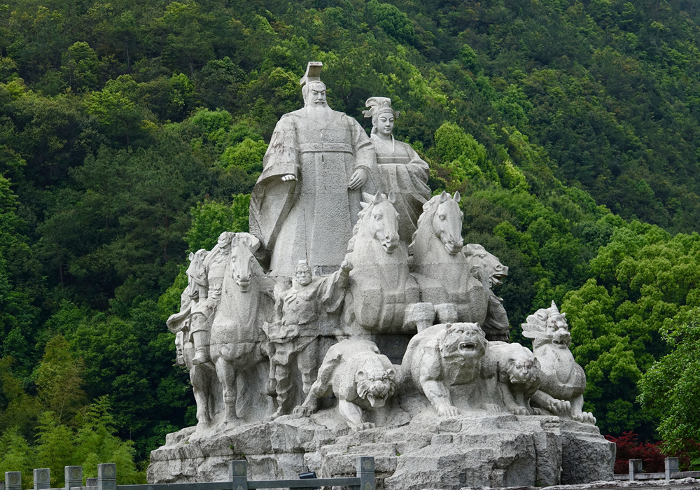 雕塑氣勢磅礴形神兼?zhèn)?,體現(xiàn)著中華人文始祖軒轅黃帝南巡時的場景和風采。李仁奇 攝