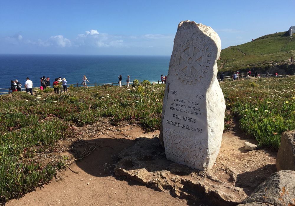 不遠(yuǎn)處刻著航海輪舵形狀的石牌是辛特拉扶輪社為紀(jì)念國際扶輪社的創(chuàng)建者——美國人保羅?哈里斯而立的。李仁奇 攝