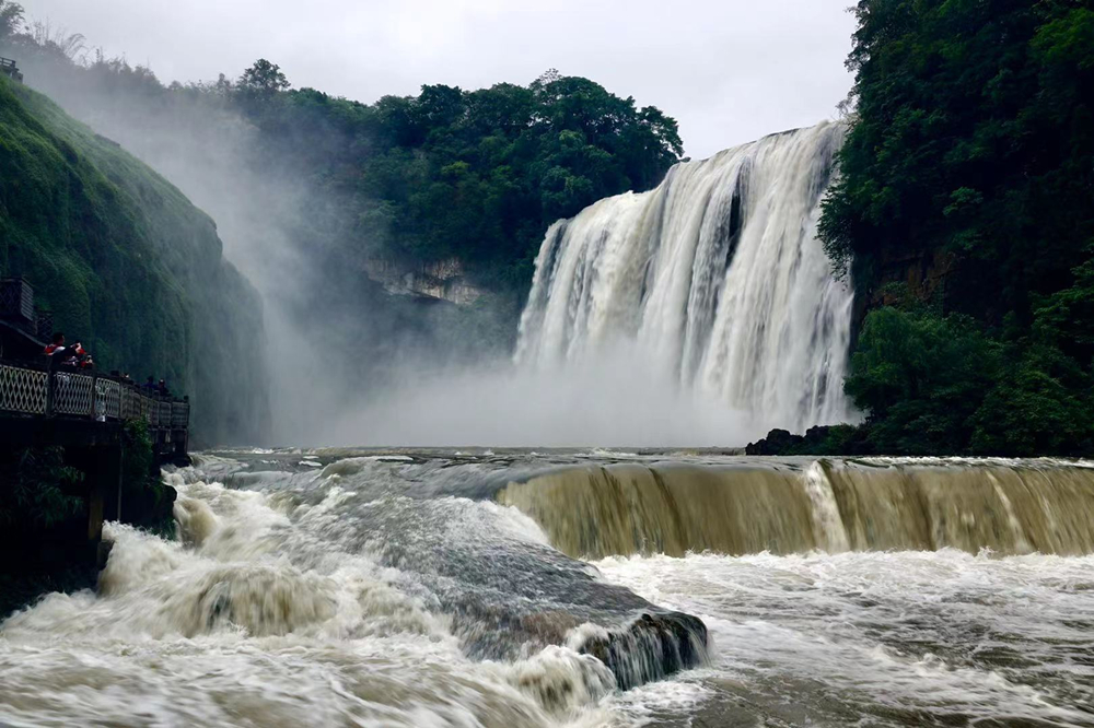黃果樹瀑布的游客數(shù)以萬計(jì),但是能夠在豐水期觀賞到特別壯觀景象的游客卻是少數(shù)。李仁奇 攝