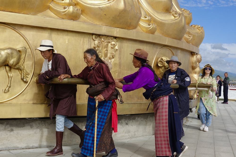 寧瑪寺大藏經(jīng)轉經(jīng)筒以筒身高度35.81米,筒身直徑12.43米的數(shù)據(jù)打破了青海貴德“中華福運輪”保持的吉尼斯世界紀錄,成為世界最大的轉經(jīng)筒。李仁奇 攝
