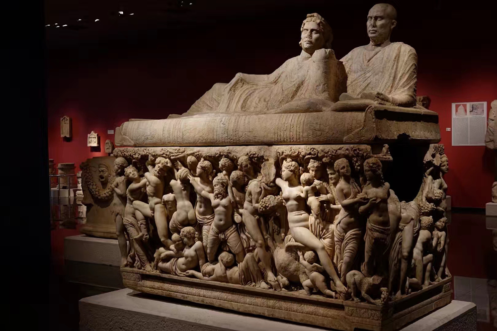 狄?jiàn)W尼索斯石館。側(cè)立面是眾神狂歡圖,下方還有小愛(ài)神丘皮特。李仁奇 攝