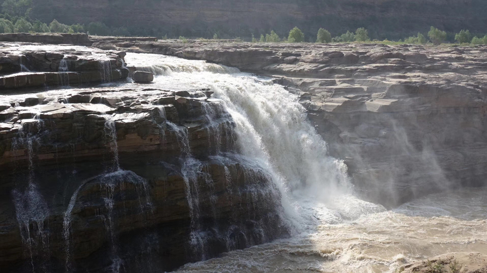 瀑布上游黃河水面寬300米,在不到500米長的距離內(nèi),被壓縮到20-30米的寬度。1000立方米/秒的河水,從20多米高的陡崖上傾注而下,形成”千里黃河一壺收”的氣概。這也是第四套人民幣50元紙幣背面的取景地。李仁奇 攝