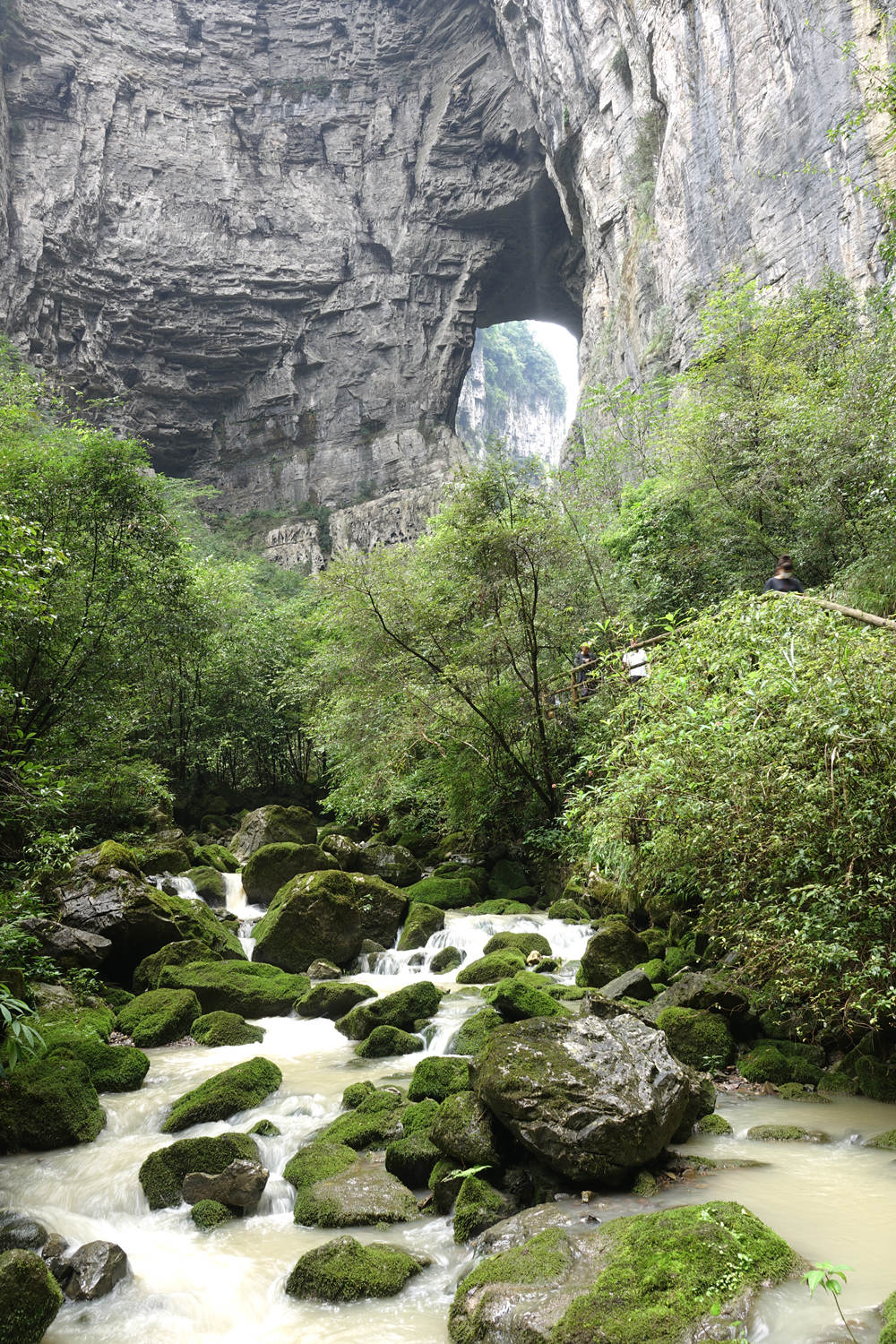 青龍橋為羊水河峽谷上的第二座天生橋,又名中龍橋,橋面高281米,是三座天生橋中最高者,為世界喀斯特天生橋高度之最。李仁奇 攝