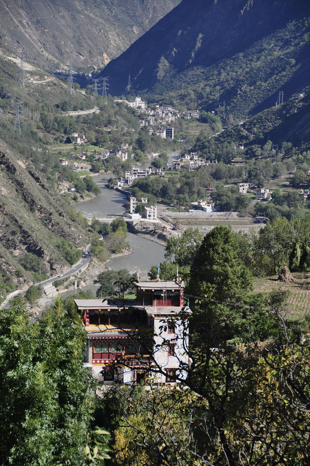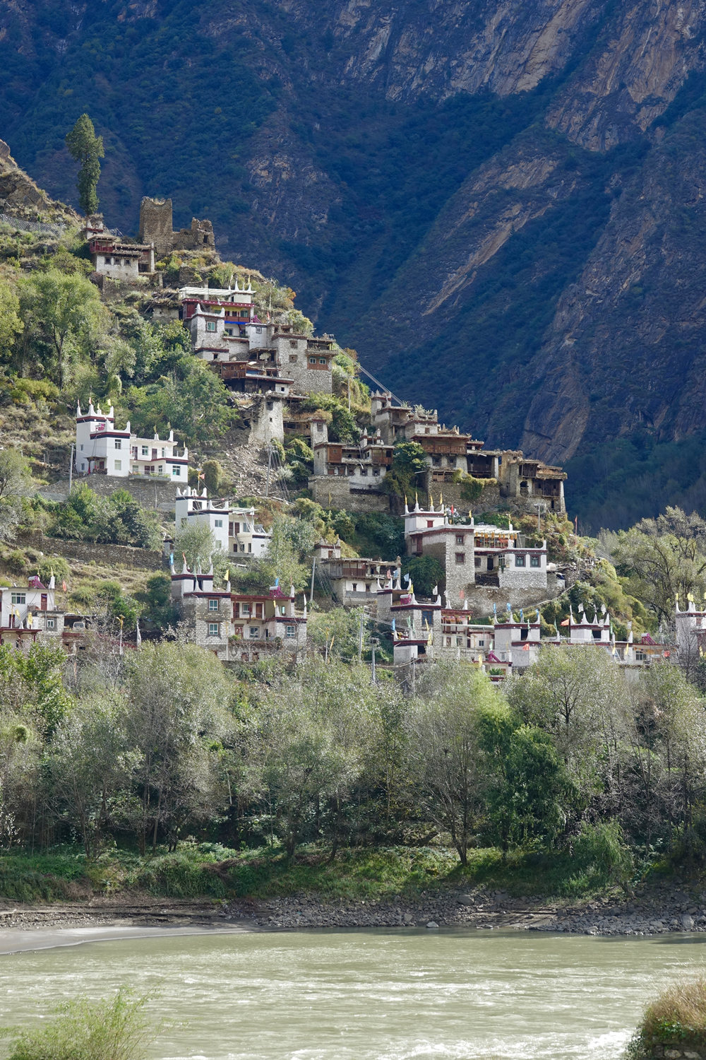 嘉絨藏民多居住在河谷或半山向陽的寨子里。自古以來,他們建就地取材建房,用黃泥作粘合劑,以石塊砌墻,以巨木為梁,橫搭雜木,蓋土于上,堅固不漏。李仁奇 攝