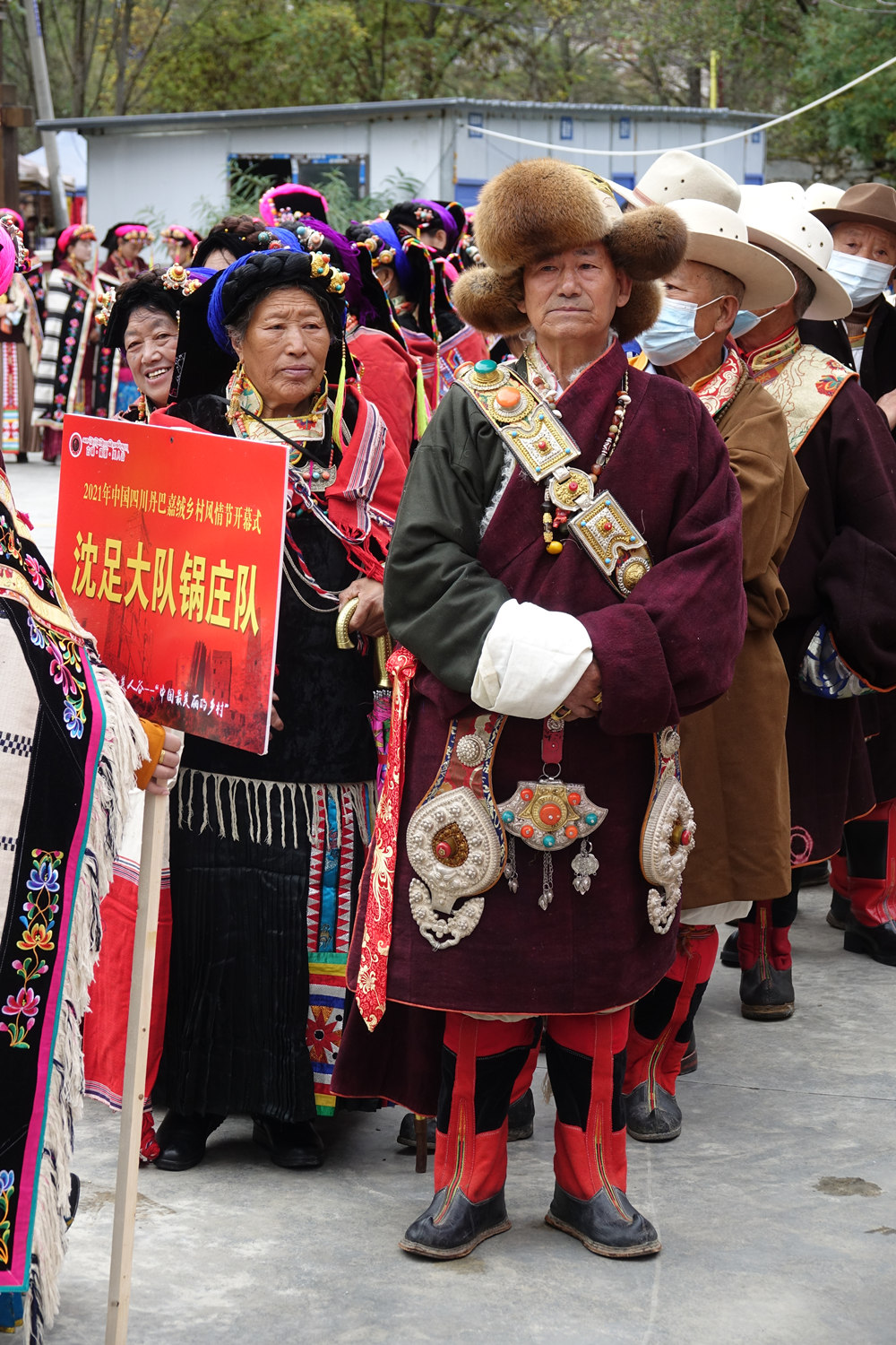 巴底鎮(zhèn)二基坪弓箭舞表演隊,他們將表演弓箭舞《嘉絨十三戰(zhàn)神》。李仁奇 攝