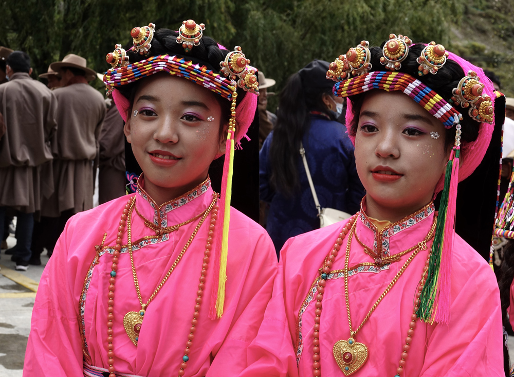 穿著節(jié)日盛裝的嘉絨藏族同胞在這個盛會上展示他們的風采,令游客大飽眼福。李仁奇 攝
