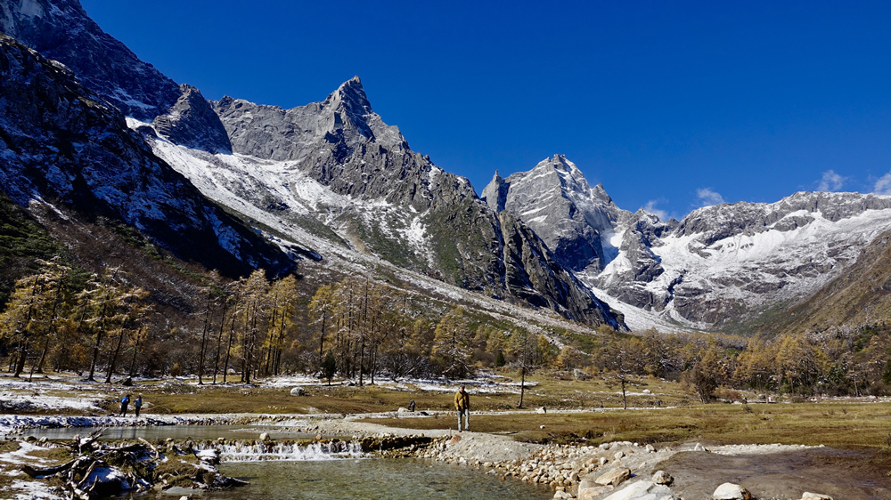 高山上融化的雪水汨汨而下,形成了溪流,溪流在草甸中潺流,溪水冰涼刺骨。李仁奇 攝