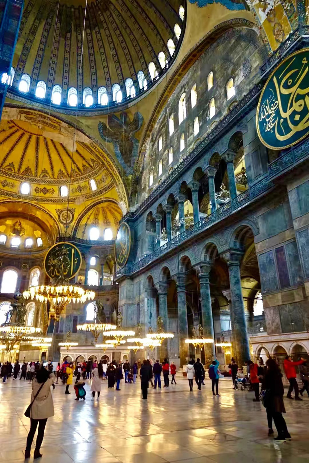 圣索非亞大教堂的特別之處在于平面采用了希臘式十字架的造型,在空間上,則創(chuàng)造了巨型的圓頂,而且在室內(nèi)沒有用到柱子來支撐。李仁奇 攝