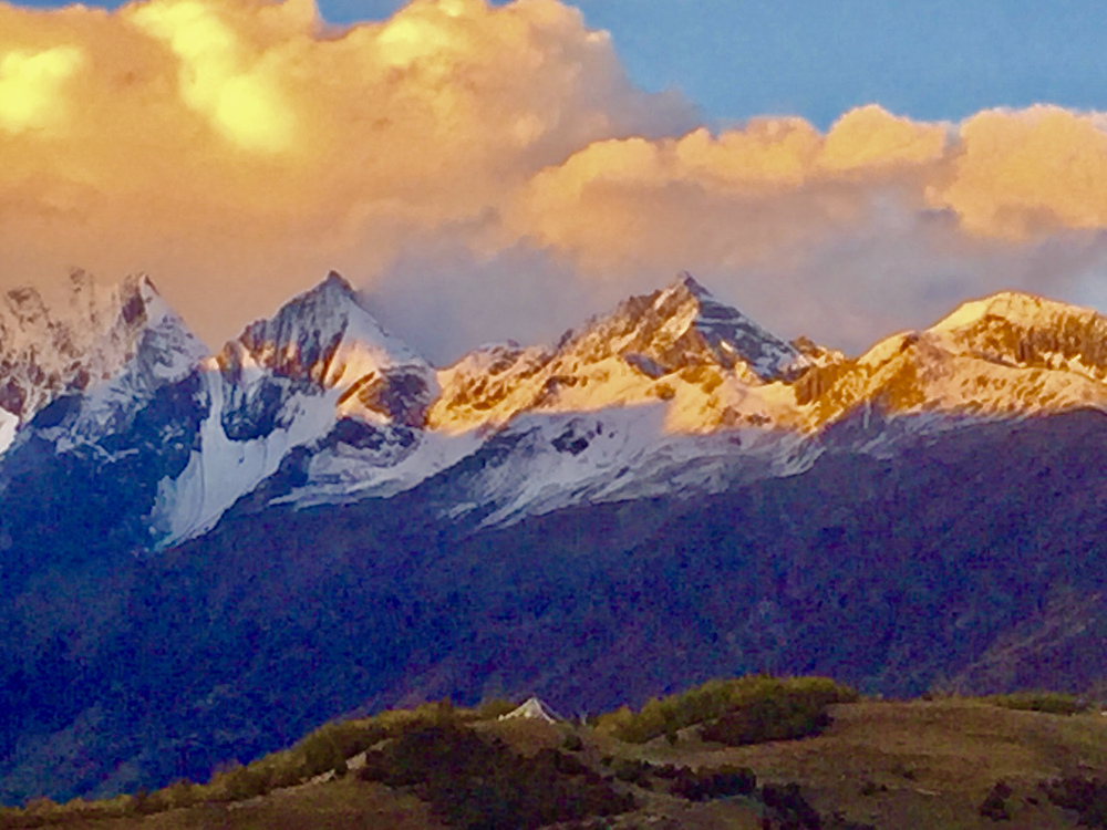 如果天氣晴好,在四姑娘山鎮(zhèn)旁山坡上的觀景臺(tái)可以眺望到同框的四座雪峰。李仁奇 攝
