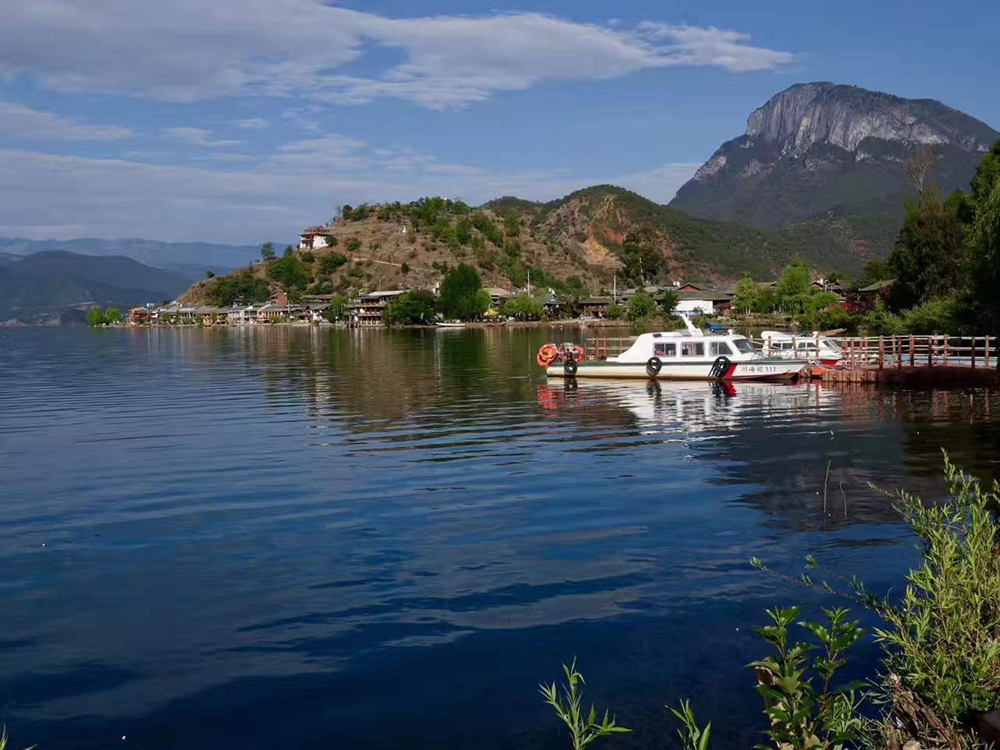 對面就是格姆女神山,從女神山吹來一縷縷浸透涼意的微風(fēng),貼著湖面飄蕩。李仁奇 攝