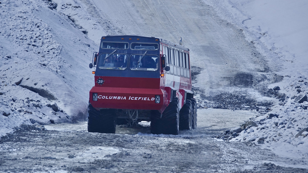 哥倫比亞冰原是北美洲最容易進(jìn)入的冰川群。乘坐特別設(shè)計(jì)的“冰原探險(xiǎn)家號(hào)”全地形旅游巴士,可以輕松踏上長(zhǎng)達(dá)六千米的阿薩巴斯卡冰河上的冰原。李仁奇 攝