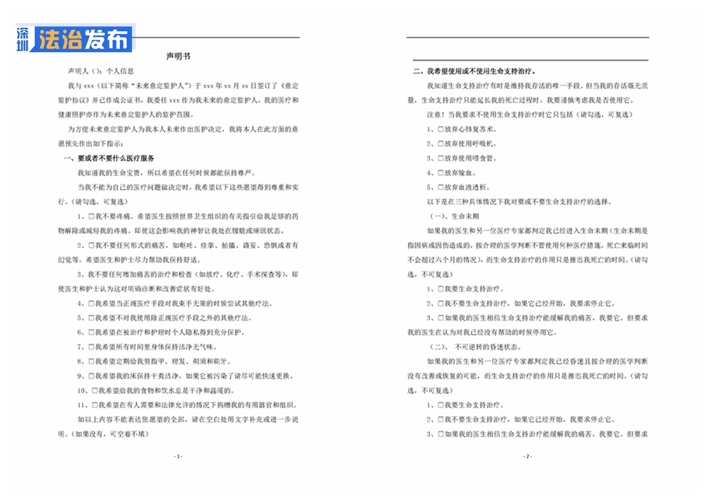 除了生前預(yù)囑的3種情況外,杜芹律師公證的這份聲明書(shū),包含5個(gè)愿望清單①我要或不要什么醫(yī)療服務(wù)②我希望使用或者不使用生命支持治療③我希望別人怎么對(duì)待我④我想讓我的家人和朋友知道什么⑤我希望誰(shuí)幫助我。