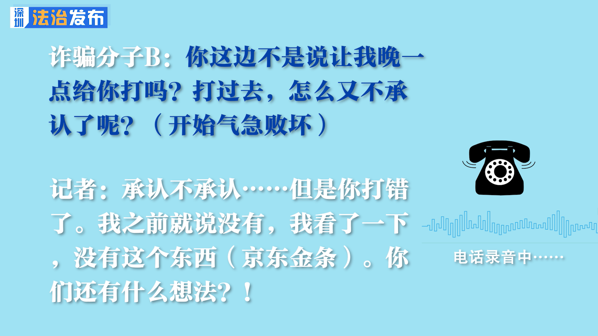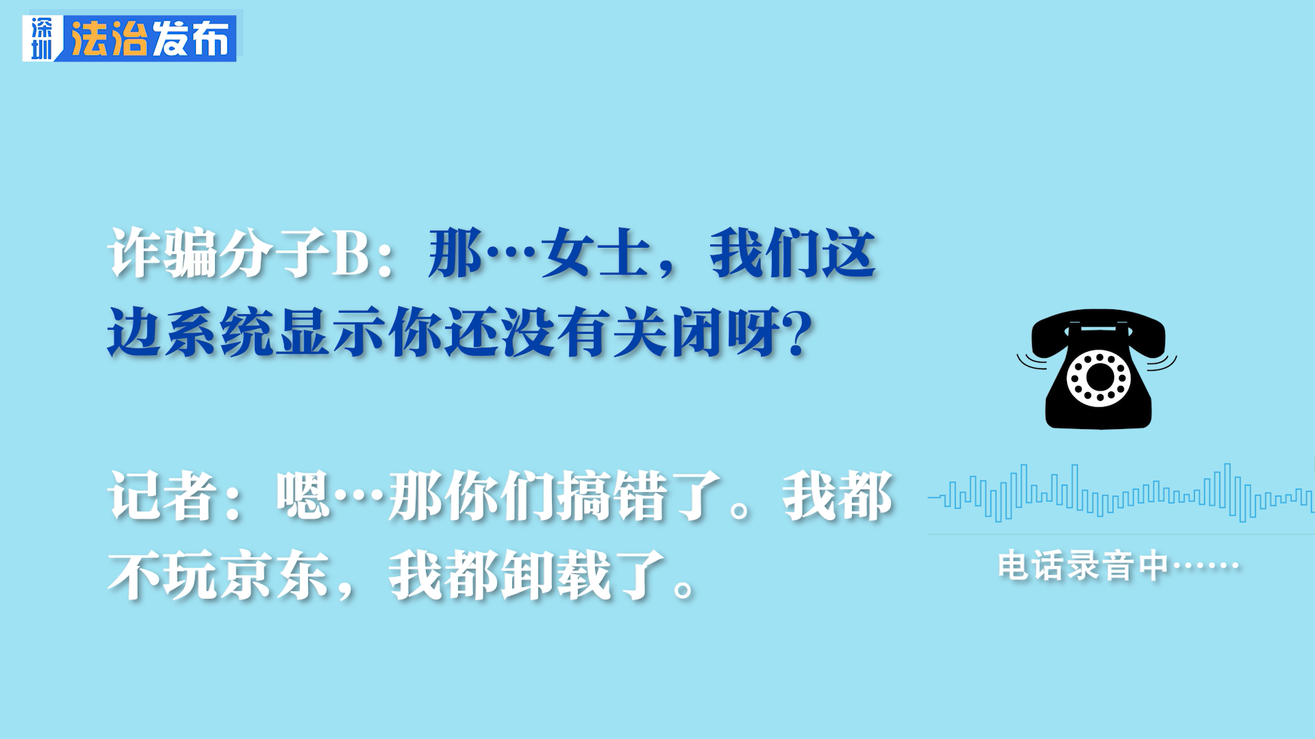讀特客戶端深圳新聞網(wǎng)2022年11月23日訊(記者 張玲 翁任瑩)警惕金融詐騙新騙局!近日,各地陸續(xù)有報(bào)道詐騙分子冒充京東客服要求關(guān)閉白條、金條的新話術(shù),萬(wàn)萬(wàn)沒(méi)想到,詐騙分子11月22日就將電話打給了深圳新聞網(wǎng)法治新聞?dòng)浾?,接下?lái)的事情發(fā)展,“畫風(fēng)”漸漸不對(duì)了。