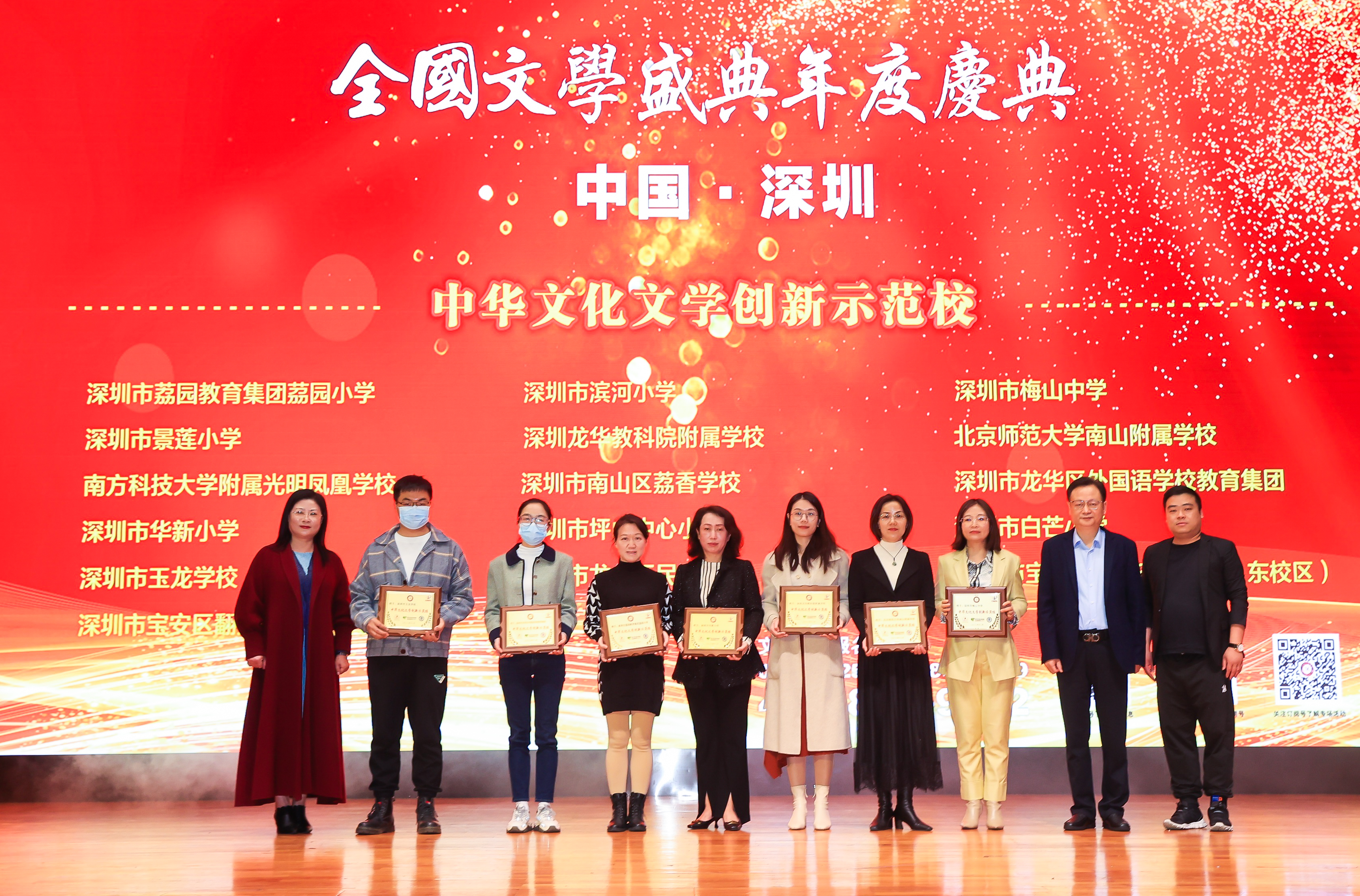 中華文化創(chuàng)新文學(xué)示范校獲獎代表合影