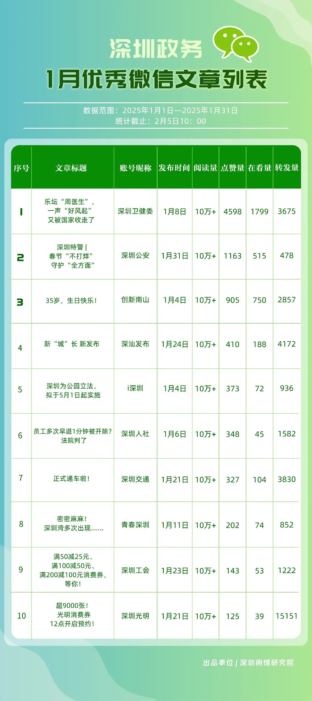 2025年1月期《深圳優(yōu)秀政務(wù)新媒體矩陣》發(fā)布,一同揭曉哪些政務(wù)新媒體矩陣能夠憑借其卓越表現(xiàn)脫穎而出,成為推動(dòng)政務(wù)信息傳播與服務(wù)模式創(chuàng)新的領(lǐng)航者,引領(lǐng)政務(wù)新媒體運(yùn)營(yíng)邁向新高度。
