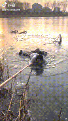 山東威海一老人摔入冰湖