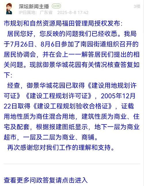 (三)關(guān)于“消防、環(huán)保、安全”等問題:經(jīng)向相關(guān)部門了解,該項(xiàng)目尚未進(jìn)入相關(guān)的規(guī)劃變更、環(huán)保備案及消防審批等程序,街道已于8月6日再次就規(guī)劃、消防等問題約談龍勝公司負(fù)責(zé)人,負(fù)責(zé)人表示改建電子市場目前仍處于規(guī)劃階段,公司已暫時停止實(shí)施該商業(yè)項(xiàng)目。