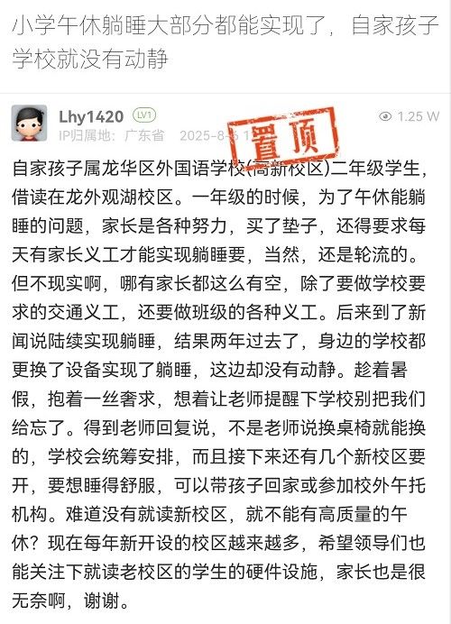 12. 帖文《小學(xué)午休躺睡大部分都能實(shí)現(xiàn)了,自家孩子學(xué)校就沒有動靜》
