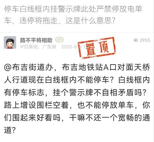 針對市民提及“白線框內(nèi)有停車標(biāo)志,掛個警示牌不自相矛盾嗎?”的問題。經(jīng)核實(shí),市民提及的問題處已被規(guī)劃為不可停放區(qū)域,禁停標(biāo)識及鐵馬圍擋是為清除白線框施工而設(shè)置的臨時空間預(yù)留措施,對此給市民帶來的誤解以及不便,我們深表歉意。目前該處白線停車框及禁停標(biāo)識已一并清除。