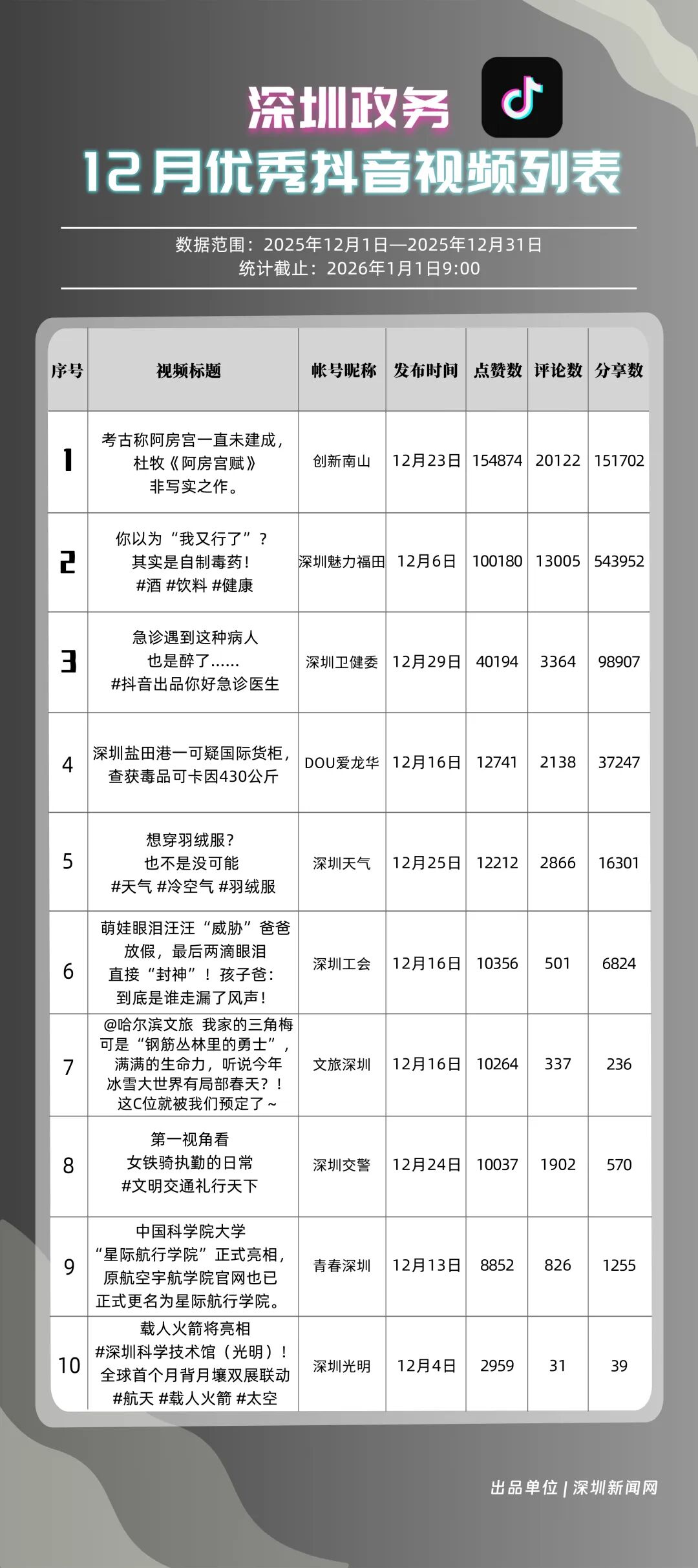 四、12月深圳優(yōu)秀政務(wù)新媒體賬號