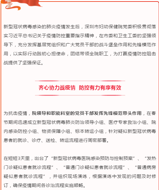“婦女、兒童抵抗力比較弱,所以母嬰疫情防控工作更加顯得尤為重要。我們是全市婦幼的’龍頭’單位,不僅要做好全院的疫情防控工作,還承擔(dān)著向全市提供為母嬰健康保駕護(hù)航的指引工作,作為醫(yī)務(wù)人員我們更是責(zé)無旁貸要做好本職工作?!百嚤叹旮嬖V記者,深圳市婦幼保健院是全市49家發(fā)熱門診之一,作為全市唯一一家婦幼三甲??漆t(yī)院,該院承擔(dān)著更多在特殊時(shí)期為母嬰健康與安全保駕護(hù)航的作用。